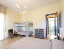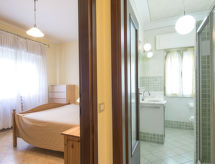 "Il Litorale", 3-room apartment 70 m2 on 2nd floor. Bright, simple and practical furnishings: living room with 1 double sofabed, dining table, TV and air conditioning. Exit to the balcony. 1 double bedroom with 1 x 2 bunk beds, air conditioning. 1 room with 1 double bed and air conditioning. Kitchen (5 hot plates, dishwasher, electric coffee machine) with dining table. Exit to the balcony. Shower/bidet/WC. Gas heating. 2 balconies. Facilities: washing machine. Internet (WiFi, free). Reserved parking (fenced 1 car) at the house.- Facilities