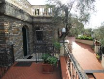 Residence "Il Risveglio". 6 apartments in the property. 1 km from the centre of Imperia Oneglia, in a sunny, elevated position, 1 km from the sea. For shared use: property (fenced) with plants and trees, swimming pool heated (11 x 4 m, depth 120 cm, seasonal availability: 15.May. - 30.Sep.). Outdoor shower, garden furniture. In the house: washing machine (for shared use). Stepped path to the house. Parking (limited number of spaces) at 20 m public parking 50 m. Grocery 1 km, restaurant 1 km, railway station "Imperia" 2 km, pebble beach 1 km. Nearby attractions: Imperia Porto Maurizio 5 km. Please note: car recommended. Not suitable for small children. The owner lives on the same property. The property consists of 3 buildings and it is fenced by a wall and gate.Interior