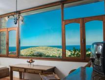 "Iliotropio", 2-room apartment. Bright, comfortable and beautiful furnishings: open living/sleeping room with 2 sofabeds and TV. Exit to the terrace. 1 double bedroom with 1 double bed. Small, open kitchen (3 hot plates, mini-oven, electric coffee machine) with small dining table. Shower/WC. Air-conditioning. Small terrace. Beautiful panoramic view of the sea and the countryside. Facilities: safe, iron, hair dryer. Internet (WiFi, free). Please note: non-smoking house. 1039Κ132Κ3090101- Facilities