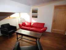 60 m2. More information by the provider: This renovated apartment is in the top floor of a multi-family house with three apartments and is situated in Pöschenried. There is one parking place. From the balcony you have a nice view on the Wildstrubel. It is possible to start to different walks and hikes directly from the apartment. This apartment is renovated completely and obtains 3.5 rooms with 5 beds, which are distributed in two bed rooms. In one room there’s a double bed and in the other bedroom there’s another double bed and a big single bed 140 cm. The big kitchen is full furnished and is beside the living room, which is very comfy. In the bath room, there’s a big shower. From the balcony you have a very nice view on the mountains. Public transport included in the Simmental and Saanenland with the SIMMENTAL CARD: Overnight guests in the Lenk-Simmental holiday region travel free of charge on public transport for excursions from 1 May until 31 October with a valid guest card. During the rest of the year, all bus lines in Lenk continue to be available free of charge. Inkl: electricity, water, heating, parking, bath and kitchen towels, bed linen, final cleaning.- Characteristics of the accommodation