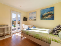 "Jada", 5-room villa 300 m2 on 2 levels. Object suitable for 8 adults. Spacious and bright, fully renovated, modern and cosy furnishings: large living/dining room with sliding door, panoramic window with dining table, satellite TV, digital TV and flat screen. Exit to the patio. 1 large double bedroom with panoramic window with 1 french bed (150 cm, length 200 cm). Kitchen-/living room (oven, dishwasher, 3 ceramic glass hob hotplates, microwave, freezer, electric coffee machine) with dining table. Exit to the patio, to the swimming pool. Shower/WC. Upper floor: 1 large double bedroom with sliding door, panoramic window with 1 french bed (150 cm, length 200 cm), bath/shower/WC, hydro massage bath, TV, flat screen, air conditioning and forced-air heating. Exit to the balcony. 1 double bedroom with panoramic window with 1 french bed (150 cm, length 200 cm), TV and flat screen. 1 double bedroom with panoramic window with 1 french bed (150 cm, length 200 cm), TV and flat screen. Bath/WC. Large patio, lawn, porch. Terrace furniture, balcony furniture, barbecue, deck chairs. View of the sea, the mountains and the resort. Facilities: washing machine, safe, iron, children's high chair, baby cot, hair dryer. Internet (WiFi, free). Reserved parking. Please note: suitable for families. Non-smoking house. ETV2525- Characteristics of the accommodation