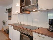 "Jonas", 2-room apartment lower ground floor. Very modern furnishings: 1 room with 1 double bed and TV (flat screen). Exit to the garden with shower/WC. Kitchen-/living room (oven, dishwasher, 4 ceramic glass hob hotplates, microwave, freezer, electric coffee machine) with 1 double sofabed, TV and flat screen. Exit to the garden.- Facilities