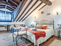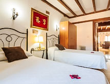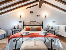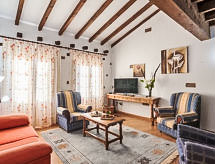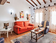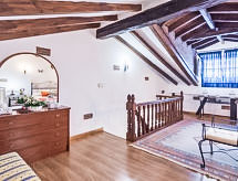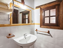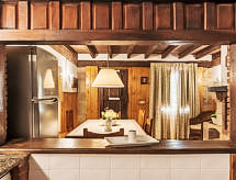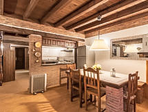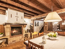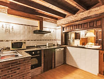 "La Anjana II", 5-room house 200 m2 on 3 levels. Fully renovated, comfortable and beautiful furnishings: living/dining room with open-hearth fireplace, digital TV, flat screen, radio, hi-fi system and DVD. Kitchen (oven, dishwasher, microwave, freezer) with bar. Shower/WC. Upper floor: open living room 50 m2. 2 rooms, each room with 2 beds (90 cm). Shower/WC. 2nd upper floor: gallery with sloping ceilings with 1 bed (90 cm), 1 sofabed and 1 french bed (150 cm). Patio 50 m2. Terrace furniture, barbecue (portable). View of the mountains and the valley. Facilities: washing machine, dryer, baby cot for up to 2 year olds, logs (extra). Internet (WiFi, free). Reserved parking (fenced), garage. 1 small pet/ dog allowed. R000000001- Facilities