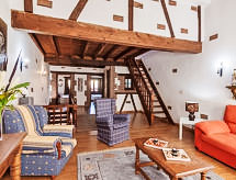 La Anjana I: Beautiful, comfortable terraced house "La Anjana". 5 km from the centre of Cabezon de la Sal, 45 km from the centre of Santander, 13 km from the sea. Parking. Grocery 1 km, restaurant 1 km, sandy beach 13 km. Nearby attractions: Comillas 8.5 km, Cueva El Soplao 24 km, Cueva de Altamira 25 km. Please note: suitable for families. The owner does not accept any youth groups. Houses completely renovated, typical stone building near a wood. The houses are about 20 m away from the caves "Las Cuevas Los Manzanos" (with a natural underground lake and stalactites), open to the public.Interior