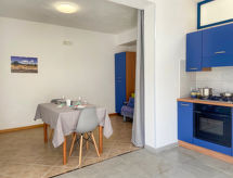 "Mare", 2-room apartment 40 m2, on the ground floor. Practical and comfortable furnishings: living/dining room with 1 double sofabed and TV (flat screen), air conditioning. Exit to the terrace. 1 double bedroom with fan. Kitchenette (4 hot plates, oven, freezer). Shower/bidet/WC. Terrace 10 m2 partly roofed. Terrace furniture, barbecue. Facilities: washing machine, iron, children's high chair, baby cot for up to 2 year olds (extra), hair dryer. Internet (WiFi, free). Please note: maximum 1 pet/ dog allowed. Private entrance. CIR:19088010B402156- Facilities