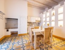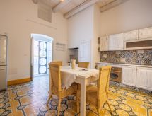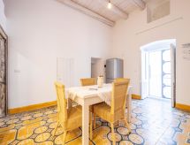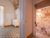 Racale 15 km from Gallipoli: Small apartment house "Casa di Matilde". In the centre of Racale, 6 km from the sea, 6 km from the beach. In the house: hydro massage bath. Stepped path (12 steps) to the house. Public parking on the road extra. Shop 100 m, grocery, supermarket 500 m, restaurant 10 m, bar 100 m, railway station "Racale-Alliste" 900 m, rocky beach "Racale" 6 km. Nearby attractions: Punta della Suina e Punta Pizzo 11 km, Torre San Giovanni 9 km, Torre Suda 6 km, Santa Maria di Leuca 32 km, Castro 35 km, Otranto 47 km. Please note: baby equipment on request (included).Interior