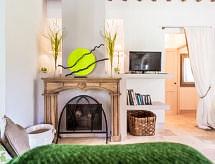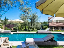 "Meletta", 4-room villa 120 m2 on 3 levels. Spacious, very comfortable and tasteful furnishings: large living/dining room 37 m2 with satellite TV and flat screen. Exit to the garden, to the terrace. Small kitchen 8 m2 (5 hot plates, oven, dishwasher, microwave, freezer, electric coffee machine). Exit to the terrace. Sep. WC. Wood heating. On the lower ground floor: 1 large room with 1 double sofabed and 1 double bed. Shower/WC. Upper floor: 1 double bedroom 14 m2 with shower/bidet/WC. 1 double bedroom 12 m2. Shower/bidet/WC. Terrace furniture, barbecue. View of the countryside. Facilities: washing machine, children's high chair. Internet (WiFi, free). Suitable for families. 1 small pet/ dog allowed.- Facilities