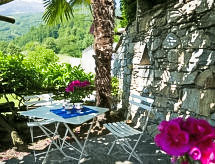 "Casa Nelly", 1-room apartment 28 m2, on the ground floor. Practical and modern furnishings: living/sleeping room with 1 sofabed and 1 french bed (140 cm, length 200 cm), cable TV (flat screen). Exit to the terrace. Open kitchen (oven, 4 ceramic glass hob hotplates, microwave, grill, electric coffee machine) with dining table. Shower/WC. Floor heating. Natural stone floors. Terrace furniture, barbecue (portable), deck chairs (2). Beautiful view of the mountains, the valley and the countryside. Facilities: children's high chair, baby cot for up to 2 year olds (extra), hair dryer. Internet (WiFi, free). Reserved parking (roofed). Please note: non-smoking house. 1 pet/ dog allowed. Separate entrance. NL-00002321- Facilities