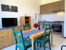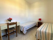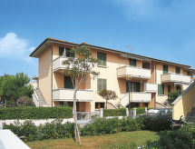 "Palazzeta III", 3-room apartment 45 m2. Practical furnishings: living/sleeping room with dining table and satellite TV. Exit to the balcony. 1 room with 1 double bed (160 cm). 1 room with 2 beds (80 cm). Open kitchen (oven, 4 gas rings). Shower/bidet/WC. No heating option. Balcony. Facilities: baby cot for up to 2 year olds (extra).- Facilities