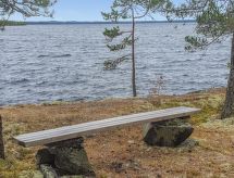 101 km to the northwest from Kuopio, lake Pielavesi 30 m, stone bottom, big pier, own rowing boat. Brick-faced holiday home (1994), kitchen, large living room, four bedrooms: bedroom 1: two 80 x 200 cm beds, bedroom 2: two 90 x 200 cm beds, bedroom 3: two 80 x 200 cm beds and bunk bed 80 x 200 cm (from this room there is entrance to bedroom number 3) , TV corner with corner sofa bed (bed size 130 x 200 cm), WC, sauna (electric sauna stove), dressing room, washroom, utility room. Wi-Fi internet connection (10 MB). There is also a separate well-equipped lakeside sauna (wood-burning sauna stove) with washroom, WC and fireplace. Dog fence and heated dog booth (made from log) for two dogs in the yard. Large ground cellar with lots of cool storage space. Well-equipped and spacious holiday home in a peaceful forest environment. Good fishing and hunting opportunities. Fish species in the lake: vendace, whitefish, and trout. A separate hot tub can be rented from the owner. Pielavesi 25 km, Runni spa 48 km, Iisalmi 59 km.- Facilities