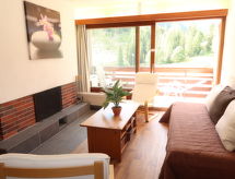 Large resort "Rosablanche", 1'730 m a.s.l., 8 storeys, built in 1972. 100 m from the centre of Siviez, on the outskirts, 8 km from the centre of Nendaz, 25 km from the centre of Sion, 10 m from the skiing area. For shared use: lawn for sunbathing, pond. Tennis (01.07. - 15.09.), basketball, children's playground. In the house: restaurant, lift, sun terrace, storage room for skis, central heating system, washing machine (extra), tumble dryer (for shared use, extra), heating available only from 01.12. to 30.04.. Motor access to the house. Parking (limited number of spaces), public parking 100 m extra. Bus stop 200 m, railway station 25 km. Skisport facilities 20 m, slopes, ski rental 10 m, ski bus stop 200 m. Well-known ski regions can easily be reached: les 4 Vallées 10 m. Please note: In case of good snow conditions, the house is accessible on skis.Interior