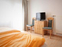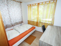 "Roswitha", 5-room apartment 148 m2 on 2 levels on 1st floor. Object suitable for 9 adults. Spacious, renovated in 2019, practical furnishings: 1 room with 1 bed. 1 double bedroom. Living/sleeping room with 1 double bed and satellite TV (flat screen). Exit to the terrace. (oven, dishwasher, 4 ceramic glass hob hotplates, microwave, electric coffee machine) with dining table. Shower, sep. WC. Upper floor: entrance hall. 1 double bedroom. Exit to the balcony. Living/sleeping room with 1 double sofabed and satellite TV (flat screen). Exit to the balcony. Kitchen (oven, dishwasher, 4 ceramic glass hob hotplates, toaster, kettle, freezer, electric coffee machine) with dining nook. Shower/WC. Balcony, large terrace 30 m2. Terrace furniture. Beautiful view of the mountains and the countryside. Facilities: Internet (WiFi, free). Please note: suitable for families. Non-smokers only. 1 pet/ dog allowed. Fire extinguisher, no lift. 50402-000673-2020- Facilities