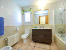 Casanova: Beautiful, comfortable house "Sandra". 2 km from the centre of Calpe, in a quiet, sunny position residential area (villas), excellent location: right in the centre but still quiet, 1.5 km from the beach. Private: property 317 m2, swimming pool angular (8 x 4 m, seasonal availability: 01.Jan. - 31.Dec.). Outdoor shower, terrace, parking at the house. Shop 2 km, supermarket 2 km, restaurant 2 km, bar 2 km, sandy beach "de Calpe" 2.5 km. Sports harbour 3.5 km, golf course (9 hole) 9 km, surf school 3.5 km, sailing school 3.5 km, tennis 1.5 km. Nearby attractions: Aqualandia, Terra Mítica, Mundomar, Terra Natura, Benidorm Palace (Benidorm).Interior