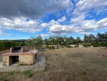 "Sangiovese", 3-room apartment 65 m2 on 1st floor. Beautiful and cosy furnishings: upper floor: (exterior staircase) living/dining room with dining table and satellite TV. Exit to the balcony. 1 double bedroom with 1 double bed. 1 room with 3 beds. Open kitchen (oven, 4 gas rings, kettle). Shower/WC. Gas heating. Balcony 15 m2, patio. Terrace furniture. Panoramic view of the countryside. Facilities: children's high chair, baby cot for up to 2 year olds. Internet (WiFi, free). Reserved parking (roofed, 1 car).- Facilities