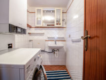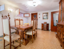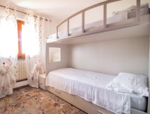 "Serenella", 4-room apartment 100 m2, on the ground floor. Simple furnishings: living room with dining table and satellite TV. Exit to the patio. Dining room. 1 small room with 1 x 2 bunk beds. 1 double bedroom. Exit to the garden. Small kitchen (4 hot plates, oven, dishwasher, toaster, kettle, microwave, freezer, electric coffee machine, Capsules for coffee machine (Nespresso)). Bath/bidet/WC, shower/bidet/WC. Gas heating. Heating available only from 01.11. to 15.04. Patio 20 m2, small garden. Facilities: washing machine, iron, hair dryer. Internet (WiFi, free). Reserved parking (fenced 1 car). Suitable for families.- Characteristics of the accommodation