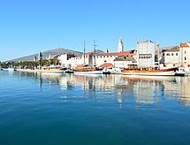Slatine (Ciovo) 6 km from Trogir: 3-family house "Sofija". In a sunny, elevated position, 100 m from the sea, 100 m from the beach. For shared use: property 250 m2, garden. Barbecue. In the house: internet access. Roofed, parking at the house on the premises. Shop 550 m, restaurant 350 m, shingle beach, rocky beach 100 m.Interior