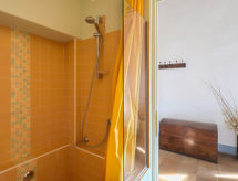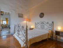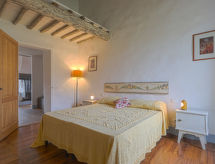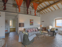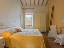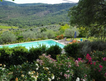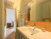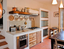 Very beautiful country house "Casa di Life", 450 m a.s.l., from the 16th century, renovated in 2012. In the hamlet Cennina 3.5 km from the centre of Ambra, 6 km from the centre of Bucine, in a sunny, elevated position on top of a hill, 300 m from the edge of the forest, in the countryside. For shared use: property 5'000 m2 (fenced), beautiful, well-kept terraced garden with trees, meadow, orchard, swimming pool (10 x 5 m, depth 150 cm, seasonal availability: 01.May. - 30.Sep.). Outdoor shower, terrace, garden furniture, pool maintenance by the owner/gardener. Motor access (100 m via unmade road). Parking on the premises. Shop 3.5 km, grocery 3.5 km, supermarket 6 km, restaurant 3.5 km, bus stop 3.5 km, railway station "Bucine" 6 km, thermal baths "Rapolano Terme" 23 km. Nearby attractions: Siena 40 km, Arezzo 34 km, Cortona 55 km, Florence 62 km. Hiking paths: Corbezzoli (13 km) 100 m. Please note: car recommended. Baby equipment (included). Residence with electric gates. The owner lives in the same residence. The owner has a dog. All houses/apartments are individually designed/furnished. Outdoor dog pen.Interior