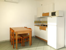 2-room apartment 35 m2. Bright, practical furnishings: living/sleeping room with 1 double sofabed, dining table, kitchen corner and TV. 1 double bedroom. Open kitchen (Gas stove, 2 gas rings, freezer). Shower/WC. Air-conditioning, forced-air heating. Heating not available in all rooms. Small balcony or small terrace. Terrace furniture. Facilities: baby cot for up to 2 year olds (extra). Internet (WiFi, extra). Reserved parking (1 car) at the house. Please note: maximum 1 small pet/ dog allowed. Private entrance.