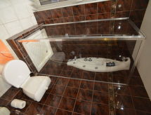 4-room apartment 99 m2 on 1st floor. Comfortable and cosy furnishings: large living room with bar and satellite TV (flat screen), radio. Exit to the terrace, west facing position. 1 room with 1 bed and 1 double bed. Exit to the balcony. 1 room with 1 double bed. Exit to the balcony. 1 room with 1 bed and 1 french bed (2 pers.). Exit to the balcony. Kitchenette (dishwasher, 4 ceramic glass hob hotplates, kettle, microwave, electric coffee machine). Bath/shower/bidet/WC, double hand-basin, hydro massage shower. Electric heating, air-conditioning. Large balcony, large terrace, west facing position. Terrace furniture, barbecue. Beautiful view of the lake and the countryside. Facilities: washing machine, iron. Internet (WiFi, free). Please note: non-smoking house. Pets are not allowed.- Characteristics of the accommodation