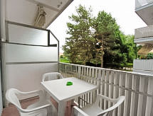 3-room apartment 70 m2. Simple and practical furnishings: living/sleeping room with 1 double sofabed and 1 folding bed. 1 double bedroom. 1 room with 1 x 2 bunk beds. Kitchen (4 hot plates). Shower/bidet/WC. Large balcony. Balcony furniture. Reserved parking. 1 pet/ dog allowed.- Characteristics of the accommodation