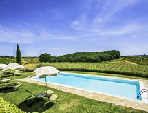 Podere S.Giuseppe, 1 km from Castelnuovo Berardenga: Podere San Giuseppe, situated in a magnificent panoramic position with extensive grounds to enjoy Siena the day and night. The renovation was made with extreme attention to detail, making the very impressive place. Ideal for those who want to enjoy the scenery of the charming hills covered with vineyards of Chianti. Very old, beautiful, comfortable farmhouse "San Giuseppe", renovated in 2004. 15 km from the centre of Terme di Rapolano, 20 km from the centre of Siena, 23 km from the centre of Asciano, on top of a hill, in the countryside. For shared use: natural garden, swimming pool (5 x 12 m, depth 120 - 240 cm, seasonal availability: 15.May. - 30.Sep.) with internal staircase. Outdoor shower, terrace, barbecue. Private: garden furniture. In the house: central heating system, heating available only from 01.11. to 15.04.. Motor access to the house (300 m via unmade road). Parking at the house. Grocery 1 km, restaurant 1 km. Riding stable 8 km. Please note: the owner lives on the same property.Interior