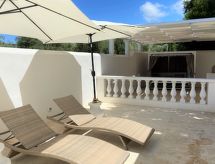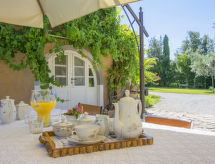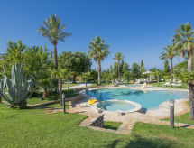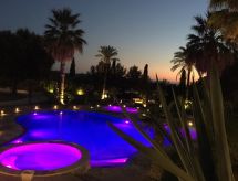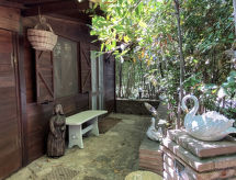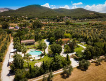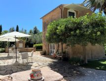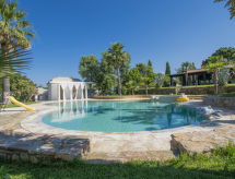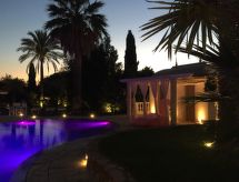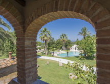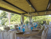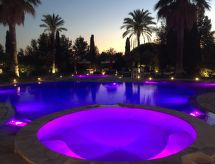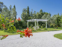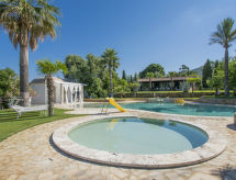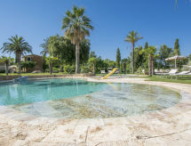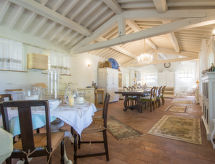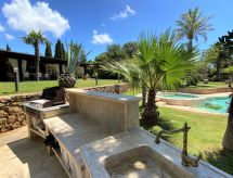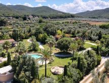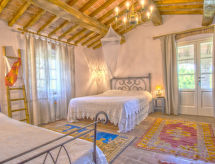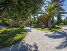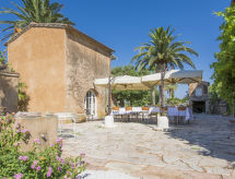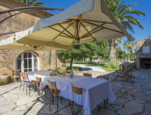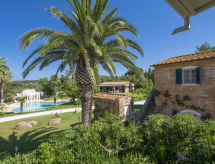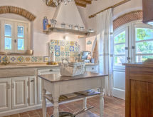 Main house and 3 outbuildings for sole use, a total of approx. 290 m² of living space. 3-room main house, 2 floors, approx. 130 m². Ground floor: living room / bedroom with double sofa bed, exit to the outside, through arches open transition to dining area with dining area for 8 people, fireplace, exit to the outside, open transition to kitchen (4 burners, oven, dishwasher, fridge / freezer combination, coffee capsule machine) . Shower / toilet. 1st floor: bedroom with double Bed (1.60 m wide). Bedroom with double Bed (1.60 m wide), single bed (0.80 m wide) and washbasin, exit via a small loggia and external staircase to the outside. Shower / toilet. Adjacent house: 2-room house, 2 floors, approx. 35 m². Ground floor: living room with sofa bed, fireplace, dining area and kitchenette (4 burners, refrigerator). Shower / toilet. Narrow spiral staircase to the 1st floor: bedroom with double bed (1.50 m wide), exit via external staircase to the outside. Garden house: 1-room house, approx. 25 m². Living room / bedroom with double bed, dining area, kitchenette (2 burners, refrigerator). Shower / toilet. Pool house: approx. 70 m². Living room with sofa, play and TV area, billiards table, dining table and kitchenette (5 burners, electric grill, dishwasher, fridge / freezer combination, coffee capsule machine, kettle). Maximum occupancy: 10 people. Bedlinen, towels, final cleaning and all energy costs are included.- Facilities