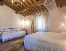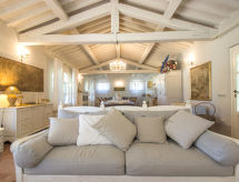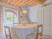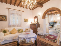Comfortable villa "Villa delle Stelle", detached, surrounded by trees and fields. Property composed of main house and outbuilding, in the hamlet Campalto, in a quiet, sunny position, 5 km from the sea, in the countryside. Private: property 6'000 m2 (fenced), park with lawn and trees, beautiful garden to relax, swimming pool kidney shaped (150 m2, depth 150 cm, seasonal availability: 01.Apr. - 25.Oct.). Shower/WC in the pool area, paddling pool, slide, hot tub, pool house with fridge and cooking stove, table tennis, patio, arbour, barbecue, pool maintenance by the owner/gardener. In the house: WiFi, hydro massage bath (all included), table tennis, billiard table, playroom, bicycles available (extra). Linen change weekly. Towel change weekly. Motor access (200 m via unmade road). Parking (for 5 cars) on the premises. Shop 6.5 km, supermarket 6 km, restaurant 1 km, railway station "Campiglia Marittima" 7 km, sandy beach "Dog Beach" 5 km, thermal baths "Calidario" 5 km. Marina 7 km, golf course (18 hole) 40 km, riding stable 16 km. Nearby attractions: Golfo di Baratti 12 km, Bolgheri 25 km, Pisa 90 km, Firenze 160 km. Please note: baby equipment (included). The owner does not accept any youth groups.Interior