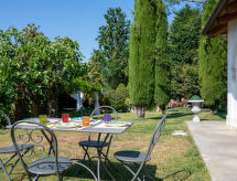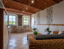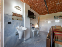 Beautiful country house "Villa Gaia", 3 storeys, surrounded by trees and meadows. 3 apartments in the property. 6 km from the centre of Montafia, in a quiet, sunny position, in the countryside. For shared use: property 7'500 m2 (fenced), well-kept garden with lawn and plants, swimming pool (12 x 6 m, depth 40 - 180 cm, seasonal availability: 15.May. - 30.Sep.). Outdoor shower, pool maintenance by the owner/gardener. In the house: lounge, washing machine (for shared use, extra). Roofed, parking (limited number of spaces) at the house on the premises. Shop 3 km, supermarket 8 km, railway station "San Paolo Solbrito" 3 km. Nearby attractions: Turin 40 km, Asti 30 km. Please note: Owner lives in separate semi-detached house. The owner has a dog.Interior