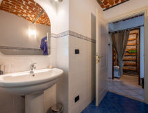 "Villa Gaia", 4-room apartment 85 m2 on 2 levels. Tasteful and cosy furnishings: 1 double bedroom with shower/WC and satellite TV. Exit to the garden. Kitchen-/living room (oven, 4 gas rings, toaster, kettle, microwave, freezer, electric coffee machine) with dining table. Exit to the garden. Upper floor: walk-through room with 1 double bed, shower/WC and satellite TV. 1 room with 3 beds, hand-basin and satellite TV. Heating. Heating available only from 01.10. to 30.04. Terrace. Terrace furniture, barbecue (portable). Panoramic view. Facilities: washing machine. Internet (WiFi, free). Please note: non-smokers only. CIR: 005073-AFF-00001- Facilities