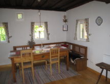 Rustic rustic chalet "Waldweber", 700 m a.s.l., from the 18th century, surrounded by trees and meadows. 7 km from the centre of Schwanberg, 25 km from the centre of Stainz, 50 km from the centre of Graz, in a secluded position on a slope, in the countryside. Private: large garden 2'000 m2 (not fenced) with trees, meadow, orchard. Fireplace. Bread roll service. Parking on the premises. Carport. Supermarket 7 km, restaurant 5 km, bus stop "Deutschlandsberg" 5 km, outdoor swimming pool 7 km. Golf course (18 hole) 15 km. Nearby attractions: Schloss Schwanberg 8 km, Schloss Hollenegg 9 km. Please note: 1st floor is closed and not occupied.Interior