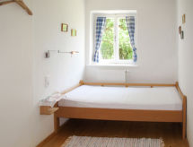 "Waldweber (SWG100)", 4-room house 85 m2, on the ground floor. Renovated, rustic and cosy furnishings: small walk-through room, without wardrobe with 1 bed and shower/WC. Walk-through room with 2 beds, satellite TV and wood-burning stove. 1 room, without wardrobe with 1 french bed (180 cm). Kitchen-/living room (oven, dishwasher, 4 ceramic glass hob hotplates, electric coffee machine) with dining table and dining nook. Electric heating. Wooden floors, natural stone floors. Patio. Terrace furniture, barbecue (portable), deck chairs (4), box-room. Beautiful view of the valley. Facilities: children's high chair, baby cot. Maximum 2 pets/ dogs allowed.- Facilities