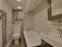 6-room cottage on 3 levels. Comfortable and tasteful furnishings: living room. Dining room. Kitchen (4 hot plates, oven, dishwasher, microwave, freezer). Exit to the patio. Upper floor: living/sleeping room with 1 double sofabed and TV (flat screen), DVD. 1 room with 1 bed. Shower/WC. 2nd upper floor: 2 rooms, each room with 1 double bed. Bath/shower/WC. Gas heating. Patio. Terrace furniture. Facilities: washing machine, dryer. Internet (WiFi, free). IPod docking station. Please note: non-smoking house.- Facilities
