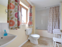 6-room cottage on 2 levels. Spacious, comfortable and cosy furnishings: living room with open-hearth fireplace, TV, CD-player and DVD. Exit to the garden. Living/dining room with wood-burning stove. 1 room with 1 french bed. Playroom. Exit to the garden. Kitchen (4 hot plates, oven, dishwasher, microwave, freezer). Shower/WC. Upper floor: 2 rooms, each room with 2 beds. Bath/shower/WC. Oil heating (extra). Large garden, lawn. Conservatory. View of the countryside. Facilities: washing machine, children's high chair, baby cot for up to 2 year olds. Please note: non-smoking house.- Facilities