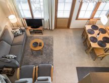 65 km al noreste de Kuopio, el lago Syväri a 500 m, orilla pública a 1.5 km, sin bote. El apartamento de alto nivel en casa adosada está situado en el mismo centro de Tahko, entre el club de Golf y Tahko Spa. El apartamento fue construido en 2004 y tiene 60 m² + buhardilla 6 m². En la planta baja hay 1 dormitorio con 2 camas, cocina-salón abierta, baño y sauna con calefacción eléctrica. En la planta superior hay 1 dormitorio con dos camas y en la buhardilla se pueden hacer dos camas extra del sofá-cama. Depósito para esquíes que se cierra con llaves, chimenea, balcón y terraza con parrilla eléctrica en el apartamento. En la planta baja hay un TV con digibox memorable y en la planta superior está el segundo TV con DVD/vídeo. Vista bonita a las pistas, a 5 minutos andando del Tahko Spa y club de golf. Para niños: cuna de viaje para bebé, silla alta y barrera de seguridad infantil en las escaleras. El propietario del apartamento Aida les da la bienvenida a los clientes para sus vacaciones con una botella de vino. El apartamento vacacional Aida amueblado con comodidad está cerca de todos los servicios de Tahko. Vista bonita a las pistas. Las pistas a 0,7 km, spa a 0,5 km, el lago Syväri a 0,4 km, orilla pública está cerca, Nilsiä a 13 km, Kuopio a 65 km, IKEA y centro comercial Matkus a 70 km, Campo viejo de Tahko a 0,1 km. Mascotas no están permitidas. Está prohibido fumar. Cada reserva empieza a las 16.00 h y termina a las 12.00 h (también en los fines de semana). El apartamento se alquila a familias o parejas, no a la gente joven.- Instalaciones