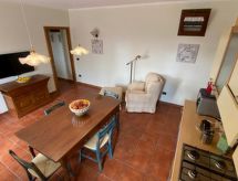 "Al Tramonto - Terra", apartamento de 2 habitaciones 50 m2, en la planta baja, orientación suroeste. Luminoso, con mobiliario de buen gusto y agradable: salón-comedor con mesa de comedor, rincón cocina y TV (pantalla plana). 1 dorm. doble. Cocina abierta (lavavajillas, Estufa de gas, 4 fuegos, tostadora, hervidor de agua eléctrico, microondas, cafetera eléctrica). Ducha/bidet/WC. Calefacción de gas. Suelo de piedra natural. Terraza grande 40 m2. Muebles de terraza, barbacoa. Vista panorámica muy bonita al paisaje. El alojamiento dispone de: lavadora, trona, cuna hasta 2 años. Internet (Wifi). Plaza de aparcamiento (1 coche) junto a la casa. A tener en cuenta: apartamento para no fumadores. Entrada privada. No hay costos locales adicionales, excepto la tasa local de turismo. La ropa de cama, las toallas, la limpieza final y los gastos de electricidad están incluidos.- Instalaciones