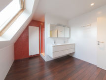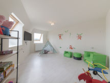 "Alaska Beach", apartamento de 5 habitaciones en 2 plantas en el 1° piso. Con mobiliario funcional y confortable: entrada. Salón-comedor con mesa de comedor, TV, TV digital y canales internacionales. Salida a la terraza. 1 dorm. doble con 1 cama (160 cm, 200 cm de longitud), ducha/WC. Cocina abierta (4 fogones, horno, lavavajillas, microondas, cafetera eléctrica). Planta superior: 1 dorm. doble con 1 cama (160 cm, 190 cm de longitud), TV. 1 dorm. doble con 2 camas (90 cm, 200 cm de longitud). Sala de juegos con TV. Ducha/bidet/WC. Balcón 15 m2, orientación noroeste. El alojamiento dispone de: secador de pelo. Internet (Wifi, gratis). Plaza de aparcamiento n. 57 (Kapelstraat 70) (1 coche). A tener en cuenta: casa para no fumadores. Detector de humo, extintores, sin ascensor.- Instalaciones