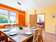 Casa 8 habitaciones 270 m2 en 2 plantas. Con mobiliario moderno y agradable: salón con chiminea nórdica, TV satélite, vídeo, radio y DVD. Salida a la terraza. Comedor. Cocina (horno, lavavajillas, 4 Placas de inducción, hervidor de agua eléctrico, microondas, cafetera eléctrica) con WC separado. Salida a la piscina. Ducha/WC, bañera de hidromasaje, Sauna. Calefacción de gas, calentador (380 litros). Planta superior: 2 dorm., cada habitación con 2 camas. 4 dorm., cada habitación con 1 cama doble. Salida al balcón. Baño/WC, ducha/WC, 2 WC separados. Vista espléndida a las montañas y al valle. El alojamiento dispone de: trona, cuna hasta 3 años. Internet (Wifi, gratis). Permitido máximo 6 mascotas / perros.- Características del alojamiento