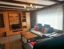 Apartamento de 4 habitaciones 90 m2 en 2 plantas, en planta superior. Con mobiliario agradable y con mucha madera: salón 35 m2 con TV satélite (pantalla plana). Salida al balcón. 1 dorm. 13 m2 con 1 cama doble (180 cm, 200 cm de longitud). 1 dorm. 9 m2 con 1 x 2 literas (90 cm, 190 cm de longitud). Cocina abierta 9 m2 (horno, lavavajillas, 4 placas de vitrocerámica, tostadora, hervidor de agua eléctrico, microondas, cafetera eléctrica) con mesa de comedor. Ducha/WC. Buhardilla: 1 dorm. 15 m2, abuhardillado con 1 cama doble (180 cm, 190 cm de longitud). Calefacción de gas. Balcón grande 20 m2. Muebles de balcón, tumbonas (1). Vista bonita a las montañas. El alojamiento dispone de: Internet (Wifi, gratis). A tener en cuenta: apartamento para no fumadores. Permitido máximo 2 mascotas / perros. Entrada privada, detector de humo.- Instalaciones