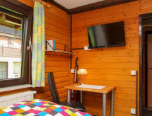 Apartamento de 3 habitaciones 77 m2, en planta superior. Con mobiliario agradable y con mucha madera: salón 35 m2 con TV satélite (pantalla plana), CD, equipo de música y DVD. Salida al balcón. 1 dorm. 13 m2 con 1 cama doble (200 cm, 200 cm de longitud). 1 dorm. 9 m2 con 2 camas (100 cm, 200 cm de longitud), TV satélite (pantalla plana). Cocina abierta 9 m2 (horno, lavavajillas, 4 placas de vitrocerámica, tostadora, hervidor de agua eléctrico, microondas, cafetera eléctrica, horno Raclette) con rincón-comedor. Ducha/WC. Calefacción de gas. Balcón grande 20 m2. Muebles de balcón. Vista bonita a las montañas. El alojamiento dispone de: lavadora, caja fuerte, plancha, trona, secador de pelo. Internet (Wifi, gratis). Lector de Blu-ray. Plaza de aparcamiento a 40 m. A tener en cuenta: apartamento para no fumadores. Entrada privada, detector de humo, extintores.- Instalaciones