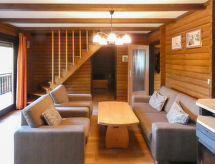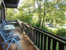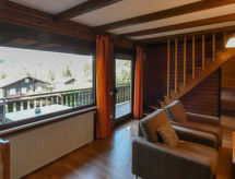 Apartamento de 3 habitaciones 75 m2, en planta superior. Con mobiliario agradable y con mucha madera: salón-comedor 35 m2 con chimenea y TV satélite (pantalla plana), equipo de música y DVD. Salida al balcón. 1 dorm. 13 m2 con 1 cama doble (180 cm, 200 cm de longitud). 1 dorm. 9 m2 con 2 camas (90 cm, 200 cm de longitud). Cocina abierta 9 m2 (horno, lavavajillas, 4 placas de vitrocerámica, tostadora, hervidor de agua eléctrico, microondas, cafetera eléctrica) con mesa de comedor. Baño/ducha/WC. Calefacción de gas. Balcón grande 20 m2, orientación sur. Muebles de balcón. Vista bonita a las montañas. El alojamiento dispone de: lavadora, leña (extra). Internet (Wifi, gratis). A tener en cuenta: apartamento para no fumadores. Permitido máximo 1 mascota / perro. Entrada privada, detector de humo.- Características del alojamiento