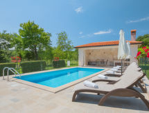 Casa unifamiliar "Ana", de 2 plantas. En el aldea Ružići, a 9 km del centro de Labin, lugar tranquilo, soleado, a 14 km del mar, en el campo. Privado: terreno 3'000 m2, jardín plantas y árboles, piscina rectangular (7 x 3 m, 24 m2, 130 cm de profundidad, Disponible por temporada: 22.May. - 11.Sep.). Ducha exterior, terraza, muebles de jardín, barbacoa, parque infantil (tobogán, columpio). En el inmueble: acceso a internet, lavadora. Aparcamiento (para 2 coches) junto a la casa en el mismo terreno. Tienda 2 km, supermercado 9 km, restaurante 2 km, café 9 km, playa de gravilla 14 km. A tener en cuenta: adecuado para familias. Una parte de la casa está cerrada e inocupada. Animales en los alrededores. Grupos de adolescents no se permiten.Interior