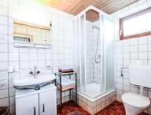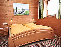 Apartamento de 3 habitaciones 55 m2, en planta baja. Luminoso, con mobiliario agradable: 1 dorm. con 1 cama y 1 cama doble. 1 dorm., sin ventanas con 1 x 2 literas. Cocina-comedor (horno, lavavajillas, 4 placas de vitrocerámica) con 1 sofá-cama, rincón-comedor y TV satélite (pantalla plana), radio. Ducha/WC. Terraza-jardín. Vista muy bonita a las montañas y al paisaje. El alojamiento dispone de: secador de pelo. Internet (Wifi, gratis). A tener en cuenta: adecuado para familias. Entrada privada, detector de humo.- Instalaciones