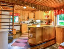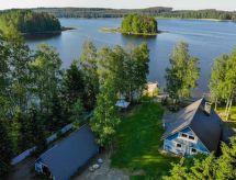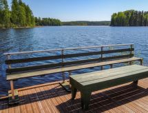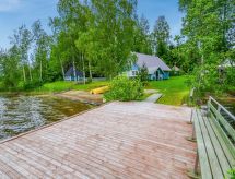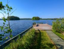 65 km al sur de Joensuu, el lago Orivesi a 20 m (536 km²), playa propia con el fondo somero y arenoso, muelle, bote de remos. Cabaña de madera de 1997, renovada en 2015, cocina, salón, dormitorio con cama doble, en la planta superior el salón-dormitorio con 2 camas. Desde el salón-dormitorio de la planta superior el acceso a 2 separados lugares pequeños para dormir (con puertas, 1 cama en cada uno). Baño y sauna (estufa a leña), separado edificio anexo en verano (2 camas). En invierno la cabaña es para 6 personas. También hay un edificio de sauna separado. Idílica cabaña de madera de estilo individual con las decoraciones. Bonito patio espacioso, playa adecuada para niños, edificio de sauna independiente y choza de parrilla. Se puede alquilar un motor para el bote (2, 4 o 15 HP). Pajarinhovi spa, parque zoológico y restaurante a 11 km. Cargo extra para mascotas. Reservas empiezan a las 16.00 y terminan a las 12.00 (también en las reservas de fines de semana).- Instalaciones