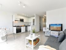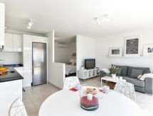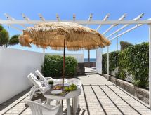 Apartamento de "San Agustin CB9B", 2 piezas para 2 personas, 45 m2, en la planta baja, con mobiliario confortable y moderno. Salón-comedor con TV satélite. Fumar no permitido. Internet (Wifi). Dormitorio con 1 cama doble. Cocina abierta con microondas, horno, mesa de comedor, frigorifico y congelador. Ducha/WC. Terraza, 2 tumbonas. Otros equipamientos: secador de pelo, plancha, lavadora. 2021-T5540- Características del alojamiento