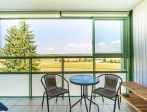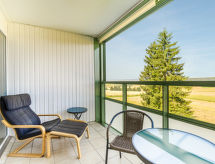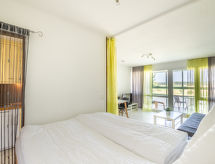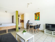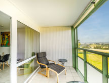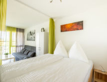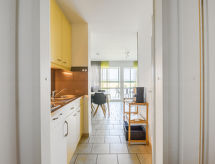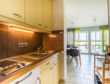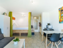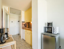 "B 34" estudio 37 m2 en el 2° piso. Con mobiliario confortable: salón-comedor con 1 sofá-cama (140 cm, 200 cm de longitud), TV satélite (pantalla plana), radio y DVD. Rincón-dormitorio con 1 cama de matrimonio (1 x 140 cm, 200 cm de longitud). Rincón-cocina (2 placas de vitrocerámica, tostadora, hervidor de agua eléctrico, microondas, cafetera eléctrica). Ducha/WC. Balcón. Muebles de balcón. El alojamiento dispone de: trona (extra), secador de pelo. Internet (Wifi, gratis). A tener en cuenta: apartamento para no fumadores. Permitido máximo 1 mascota / perro. El balcón está acristalado.- Instalaciones