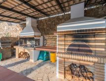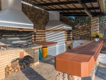 "Barite", villa 8 habitaciones 240 m2 en 3 plantas. Espacioso y luminoso, con mobiliario confortable y bonito: salón abierto con chimenea y TV satélite (pantalla plana), radio, CD y DVD. Salida al jardín, a la piscina. Cocina abierta (horno, lavavajillas, 4 placas de vitrocerámica, tostadora, hervidor de agua eléctrico, microondas, cafetera eléctrica). WC separado. Aire acondicionado. En planta inferior: 1 dorm. doble con 1 cama doble y TV (pantalla plana). Ducha/WC. Aire acondicionado. Planta superior: (escaleras sin barandilla) 4 dorm. dobles, cada habitación con 1 cama doble y TV (pantalla plana). Salida al balcón. 2 dorm. dobles, cada habitación con 2 camas y TV (pantalla plana). Salida al balcón. Baño/WC. Aire acondicionado. 2 balcones grandes. Vista bonita al mar y al paisaje. El alojamiento dispone de: lavadora, caja fuerte, plancha, secador de pelo. Internet (Wifi, gratis). A tener en cuenta: adecuado para familias un dormitorio doble está fuera del apartamento. 0208K91000279401- Actividades en la zona