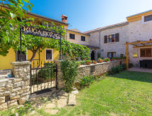 Casa semiadosada "Bozac (VOJ100)", de 3 plantas, rodeada de prados y campos. En el aldea Guran, a 3 km del centro de Vodnjan, a 10 km del mar. Comunitario: terreno 2'000 m2, árboles, pradera, piscina climatizada (8 x 5 m, Disponible por temporada: 01.May. - 01.Jun.). (columpio, cajón de arena). Privado: piscina (6 x 4 m, 130 cm de profundidad, Disponible por temporada: 01.May. - 14.Oct.). Ducha exterior, terraza (16 m2), muebles de jardín, barbacoa. En el inmueble: acceso a internet, lavadora. A disposición: bicicletas (3) (extra). Posibilidad: desayuno y media pensión (extra). Aparcamiento (para 2 coches) en el mismo terreno. Supermercado 3 km, playa de gravilla 10 km. El propietario no acepta grupos de adolescentes/jóvenes. Venta local de productos de granja.Interior