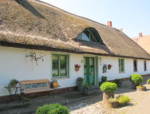 Casa rural bonita, histórica. En la localidad Katzow, a 8 km del centro de Wolgast, a 15 km del centro de Lubmin, a 15 km del mar, en el campo. Comunitario: terreno 1'200 m2 (vallado), jardín, cuidado con césped y árboles. Trastero a disposición. Tienda 8 km, supermercado 8 km, restaurante 8 km, playa de arena 15 km, piscina cubierta 25 km. A tener en cuenta: el propietario vive en el mismo inmueble.Interior