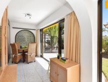 Complejo vacacional, amplia, confortable, sencilla "Bungalow Sun Club OS55". Equipamiento de la vivienda: aire acondicionado, lavadora (privado). Acceso en coche todo el año. Situación: en el centro de Playa del Ingles, lugar céntrico, tranquilo, soleado. Vista desde la vivienda al jardín. Entorno de la vivienda: piscina (comunitario), tenis (comunitario), barbacoa (privado). Las llegadas en los siguientes horarios deberán abonar un coste extra en plaza: 20:30-22:00: 30€, 22:00-00:00: 50€, 00:00-01:30: 80€.Interior