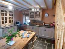 Bungalow "Bwthyn y Llan", bonito, agradable, adosada por un lado. Lugar tranquilo, soleado, en el campo. Comunitario: terreno. Privado: jardín con césped. Terraza-jardín, muebles de jardín, barbacoa, aparcamiento junto a la casa. Tienda 4 km, tienda de comestibles 4 km, restaurante 4 km, bar 4 km. Campo de golf (18 hoyos) 6 km. Atracciones en los alrededores: Welsh Wildlife Centre, Cilgerran 45 km, Cardigan Bay & Castle 40 km, New Quay / Cardigan Bay Dolphin Watching 17 km. A tener en cuenta: coche recomendable.Interior